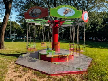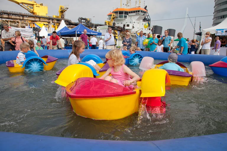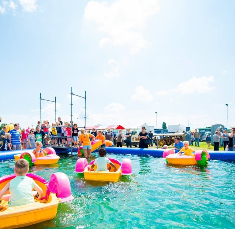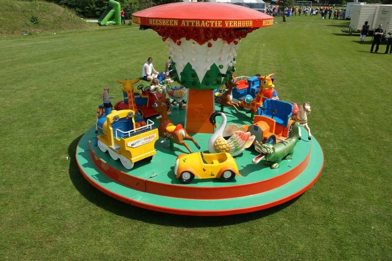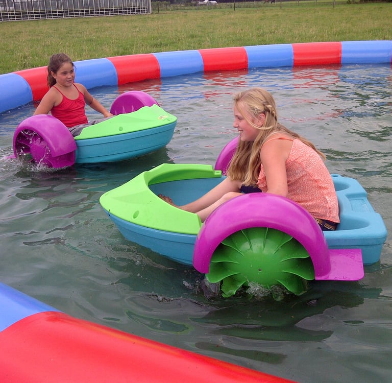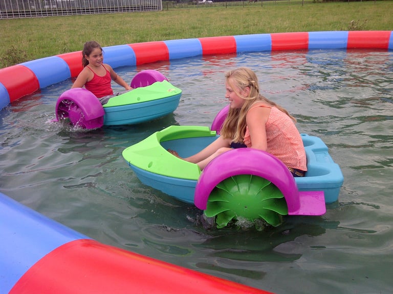 Onbeperkt toegang tot de draaimolen, zweefmolen, paddelbootjes (4+), elektrische motorfietsjes (4+)